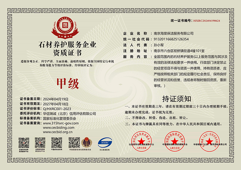 石材養(yǎng)護(hù)服務(wù)企業(yè)資質(zhì)證書